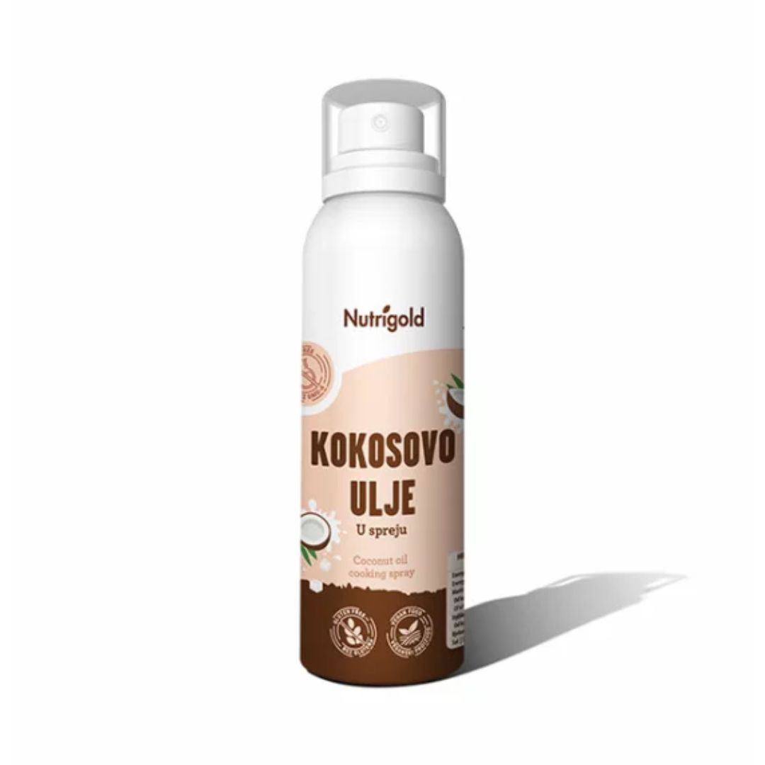 Nutrigold kokosovo ulje u spreju prirodno je ulje napravljeno naprednom tehnologijom kompresije koja omogućuje ravnomjerno raspršivanje kokosovog ulja na tavu ili na posudu za pečenje. Nutrigold kokosovo ulje u spreju:
